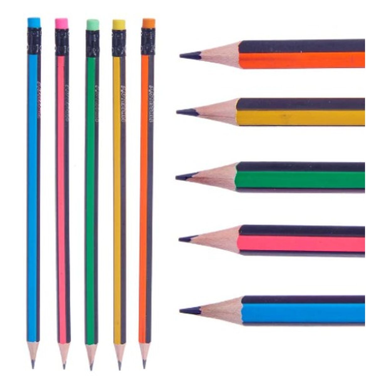 Return to the office without forgetting a single thing! Buy Pencil Set Pincello 473 Yellow Blue Green Multicolour Orange Stripes (12 Units) and be the envy of your colleagues!